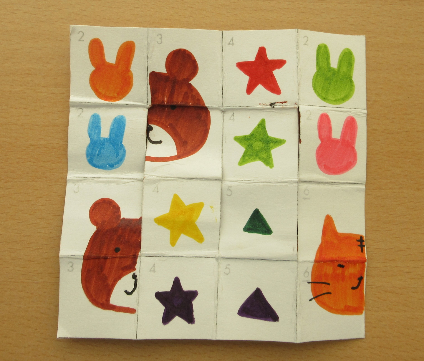 画用紙で作るオリジナルのパズル。8個のパターンが楽しめるよ。